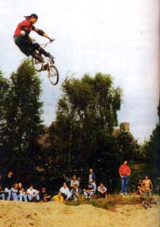| early years | Thomas: I did grow up in Lohhof a little city, north of Munich. Someday I heard about those special-for-jumping-bmx-bikes back in the days... I was always into building crap bikes together and together with my friend Yunus, we already jumped those. Actually these sessions always ended up with a destroyed bike. So we went to the junkyard the next day, picked up some bike parts, and start all over again. That was even before we ever heard about BMX. It just seemed to be fun to work on bikes and ride them up and down little curbs and stairs. So I begged my daddy for a BMX-bike, and got my first one on my 13th birthday. It was a cheap pile of shit. My parents bought it a few days before my birthday and put it in the basement. I wasn't allowed to ride it before my birthday, but one afternoon my parents were not there, and I had a little test-ride on my brand new "BMX 2000". When I got back home, I already had bent the forks and the cranks of the bike... ooops! I cleaned the bike, and nobody recognized,, so I got out of it lucky. Lucky with a bent fork and crankset. Thomas: Usually we just met at some old motocross spot and tried to jump there, or we just cruised down the streets looking for stuff to jump. We rode a lot of grass banks, boardwalks-jumps, stairs and stuff like that. And we built our own jumps, at one time we even had our own little BMX-track, complete with starting-hill, doubles, step-up, berms.. It was an awesome scene back then. I think that was around 1984. |