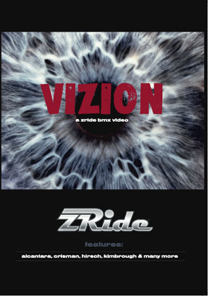 | Bart de Jong, www.fatbmx.com, may 2003: In a time when everyone and his uncle has a video camera and wants to start making a video magazine, I don't get too excited until I've seen the product. I'd heard a lot about Z-Ride. They were sponsoring riders and a team before they even had a video out. There were Z-Ryde ads in the magazines too announcing the new VDO magazine. As far as I remember the concept was different with the VDO based on one rider and it would also come with trading cards and a small magazine. Lots of blahblah but I had not seen the product yet. Here it is. The DVD arrived, sans trading cards or 'zine but I wasn't too worried about collecting trading cards anyway. Vizion is the name of the first Zride BMX video and features Seth Kimbrough teaching how to grind a rail, Rich Hirsch who is showing his bike from his grips to his pegs, a thing on a band called Pretty Girls Make Graves and a section on Rueben Alcantara. It sure had magazine type ingredients. I was well satisfied with the quality of the DVD. The filming was good, had super clear close-up shots, the editing was great and it had good music. Instead of giving the bonus sections at the end of the 30 minute DVD, Vizion starts off with Las Extras, a section with lots of riders and lots of spots (a.o. Burnside, concrete parks and Woodward). Local riders Brandon Place and Jamie McPharland get "bio's" but the best part is Ruben's interview. The questions are asked in a different way and at different places. It's not the usual quick interview, you can see they put a lot of effort into this. Nice one. Like in most videos there's a lot of crazy stuff going on in the credit section. That guy in the blue pick-up truck should have hit the gas a bit harder when Ice Money was performing his stunt show. That would have been real action. After 30 minutes El Fin came on and I had to say I was not disappointed in the first edition of ZRide. |
